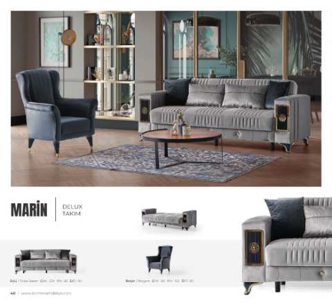 MARİN DELUX TAKIM Üçlü / Triple Seater G/W : 224 Y/H : 85 D/D : 90 Berjer / Bergere G/W : 80 Y/H : 100 D/D : 80 40 / www.alemmomobilya.com