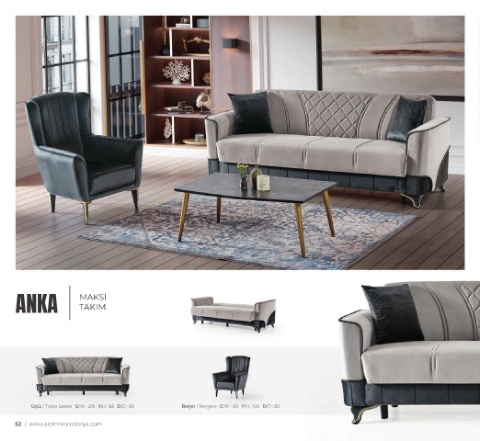 ANKA MAKSİ TAKIM Üçlü / Triple Seater G/W : 218 Y/H : 85 D/D : 85 Berjer / Bergere G/W : 80 Y/H : 100 D/D : 80 52 / www.alemmomobilya.com