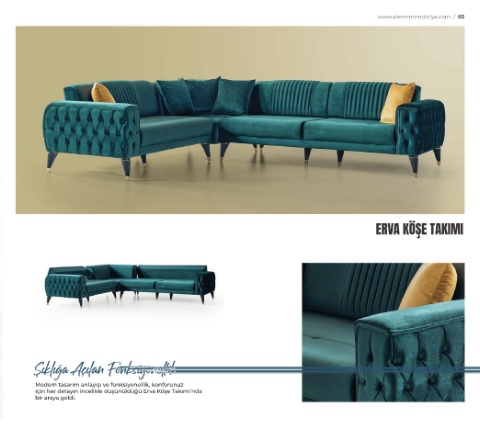www.alemmomobilya.com / 65 ERVA KÖŞE TAKIMI Modern tasarım anlayışı ve fonksiyonellik, konforunuz için her detayın incelikle düşünüldüğü Erva Köşe Takımı’nda bir araya geldi.